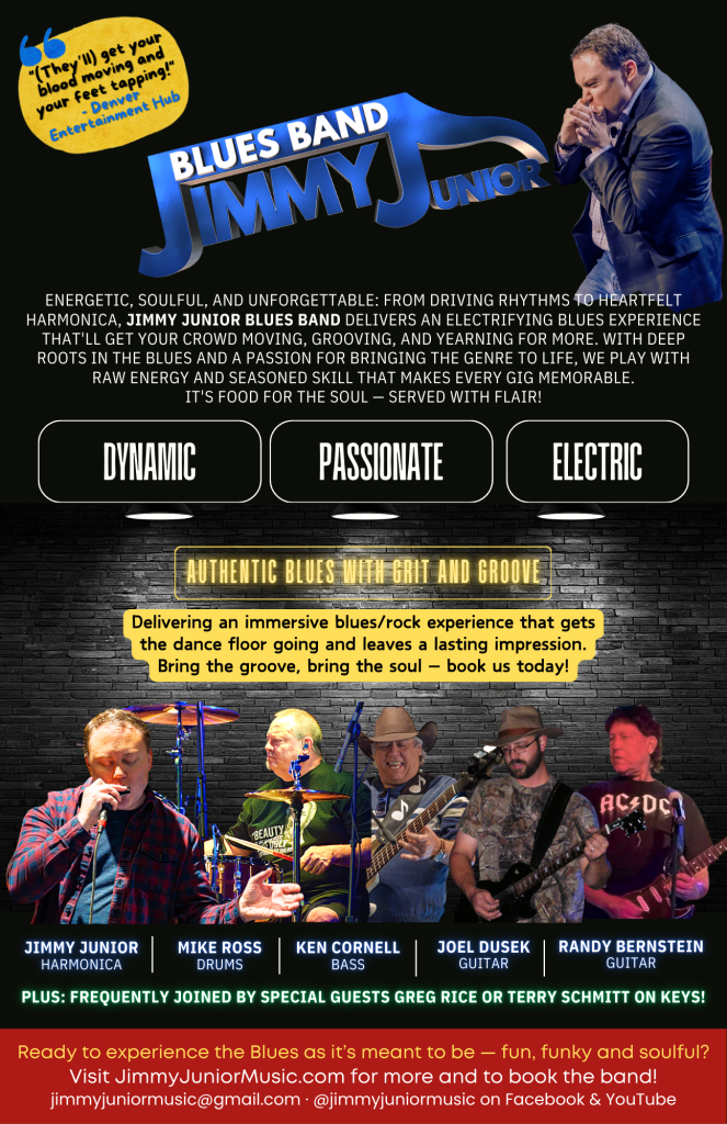 Like blues harp legend Junior Wells, Denver-based harmonica player Jimmy Junior pours heart and soul into blowing on the harp. With his own unique style and passion, Jimmy is ready to entertain and engage. No event found!