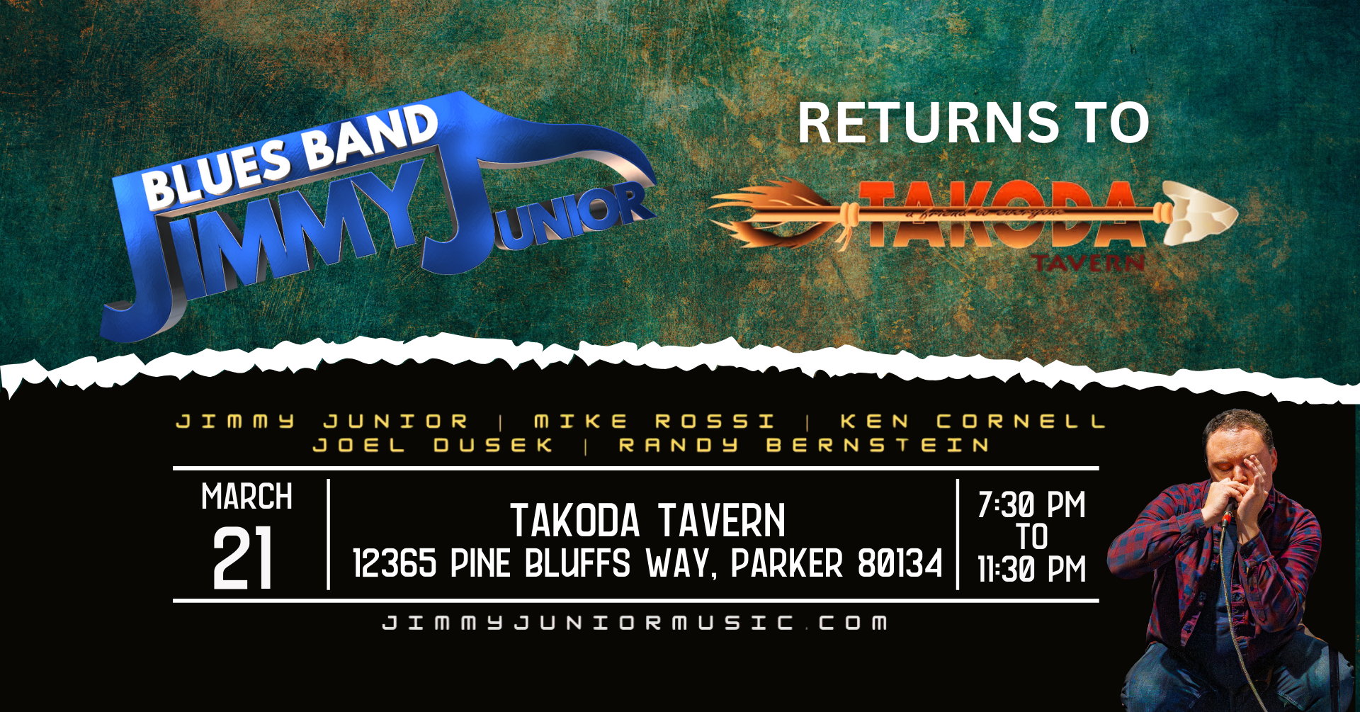 The Jimmy Junior Blues Band returns to Takoda Tavern in Parker!
